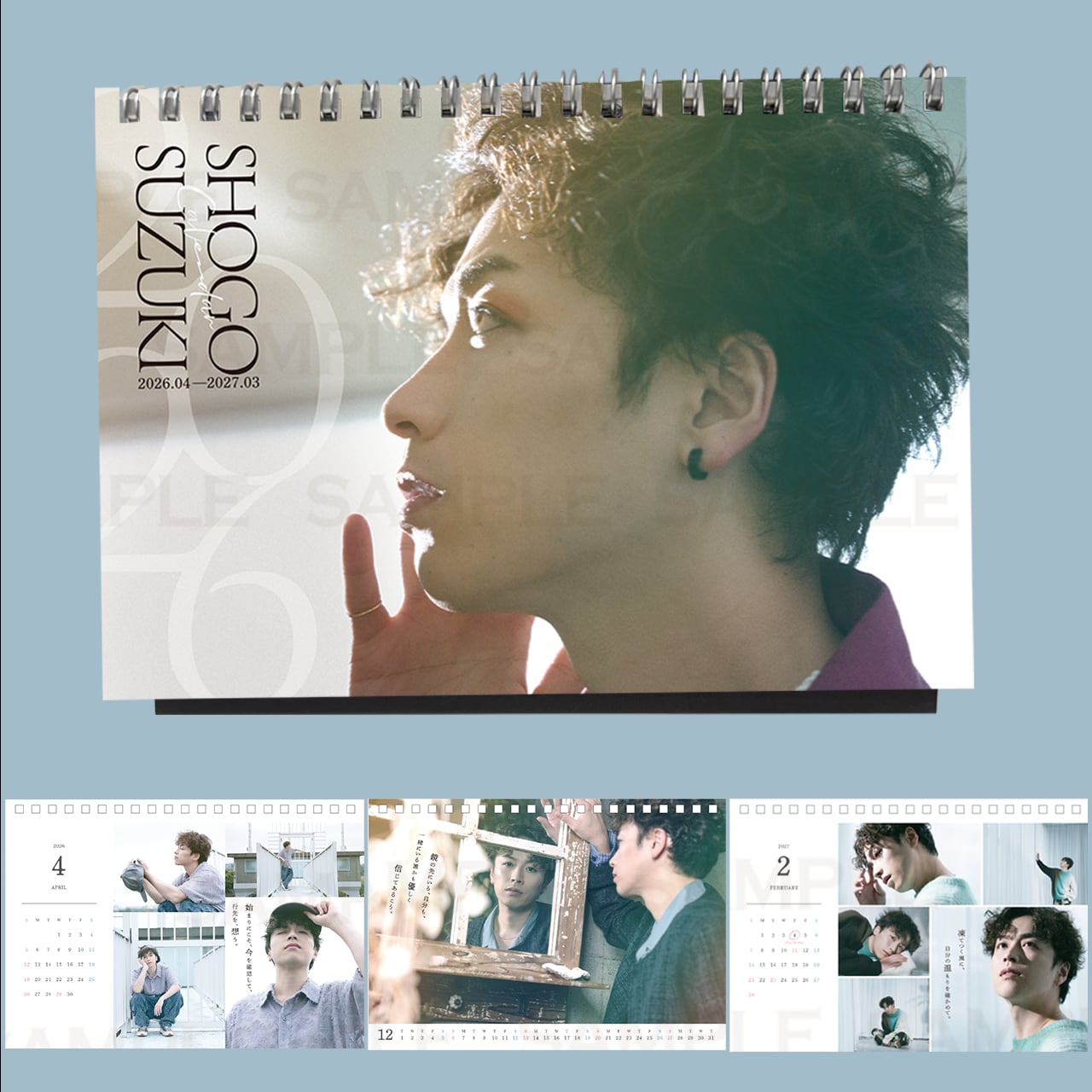 2026年度のB6サイズ卓上カレンダー。 表紙のアンニュイな横顔から、各月に散りばめられた等身大の表情やメッセージなど、今の「鈴木勝吾」を凝縮した一冊です。